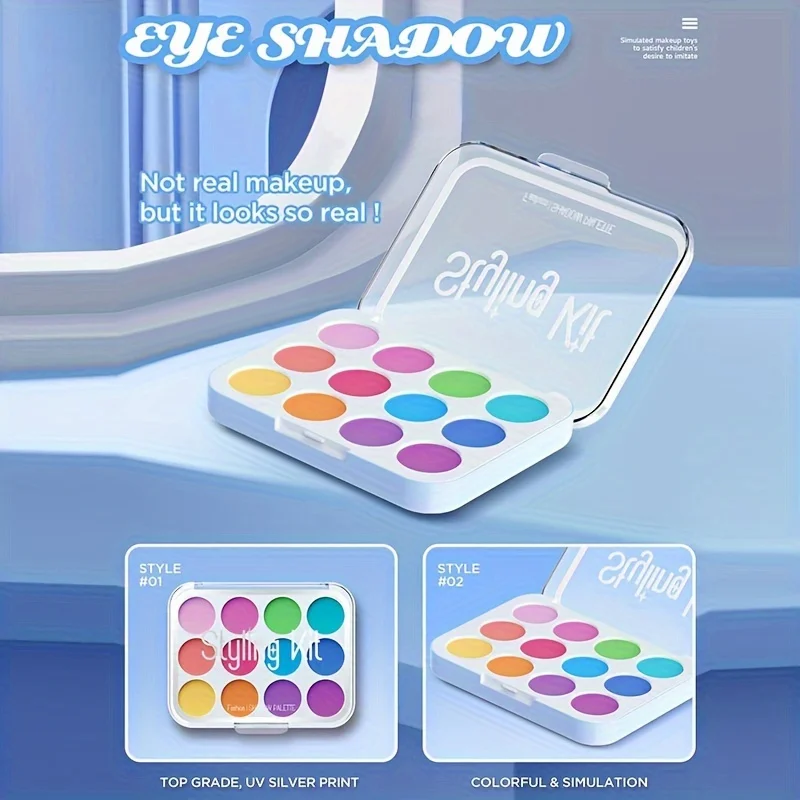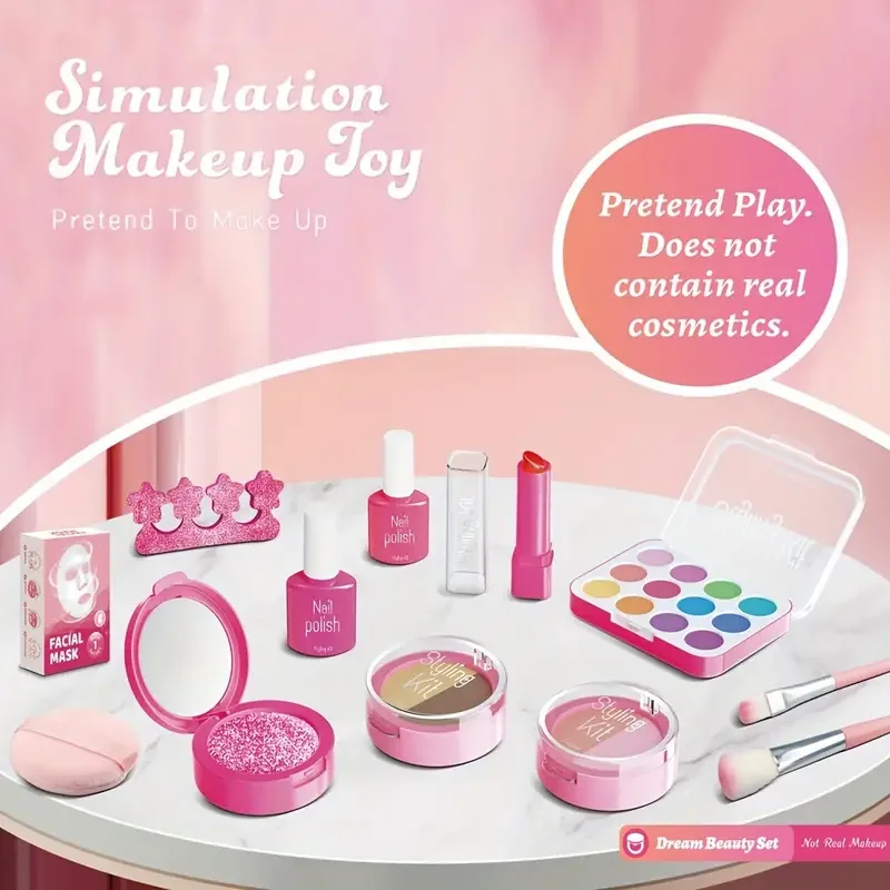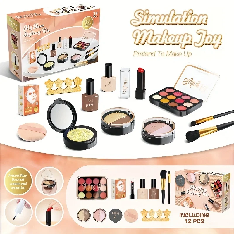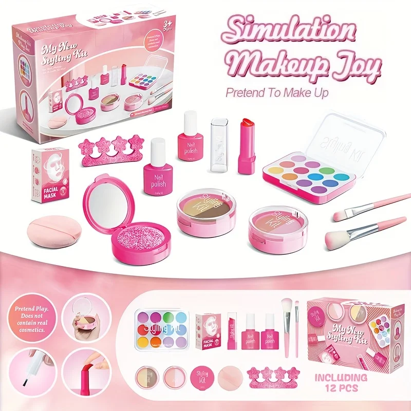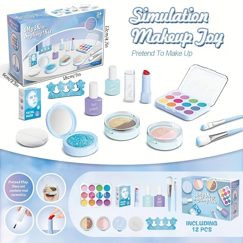 12 Piece Fake Makeup Set with Color Palette, Lipstick, Nail Polish, Princess Makeup Set, Birthday Toy Gift {No Real Makeup}